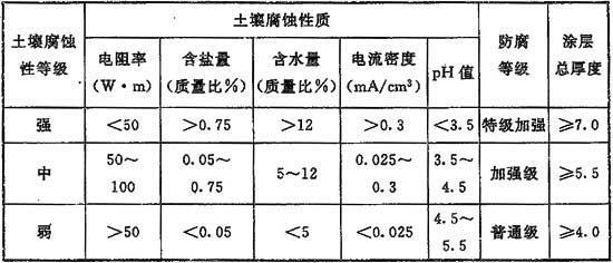 為保證管道的使用壽命,埋地管道應根據土壤腐蝕性等級進行防腐處理,其防腐涂料可選用石油瀝青或環氧煤瀝青。
